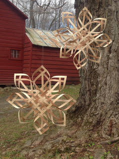Students will weave these striking snowflakes from hardwood maple and cherry wood splint. Several patterns may be woven, depending on the chosen splint. Students will weave one large 10" diameter snowflake, and two smaller 7" snowflakes, which make a beautiful grouping hung together on a tree or in a window. Additional kits will be available for sale.